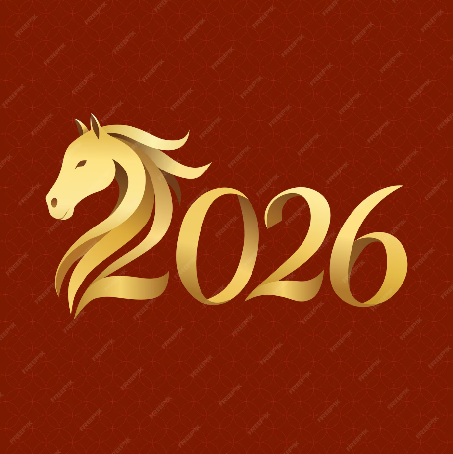 2026 typography with horse zodiac silhouette in traditional tet art style