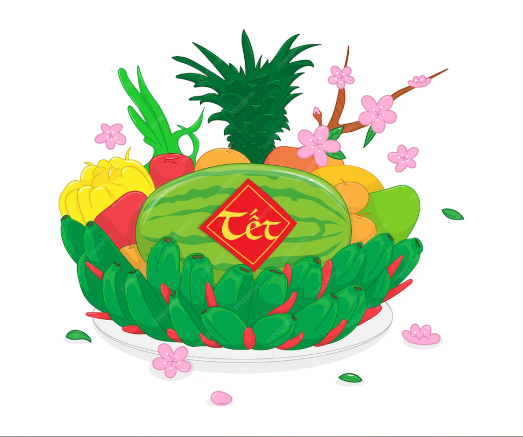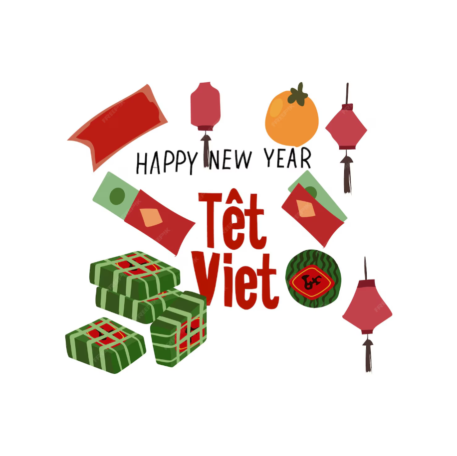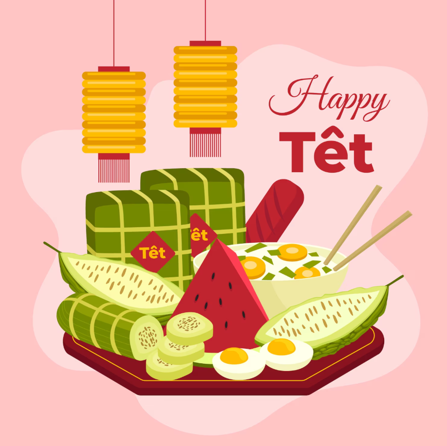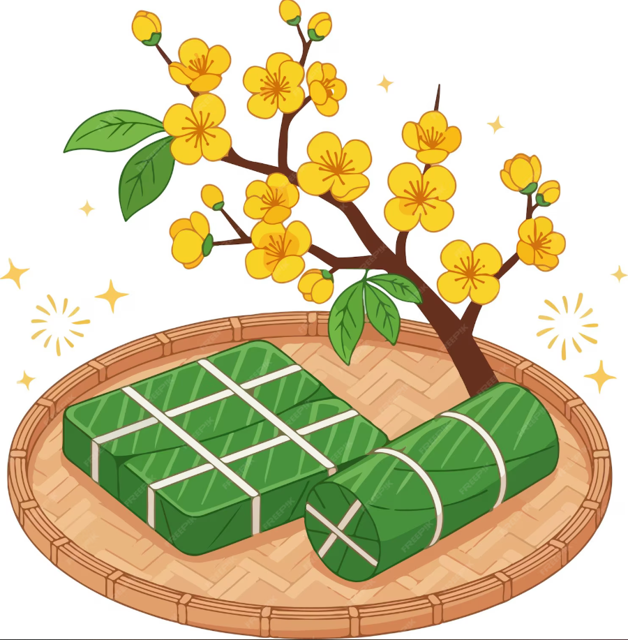 Poster Tết Vector Trang Trí Bánh Chưng & Món Ăn Truyền Thống